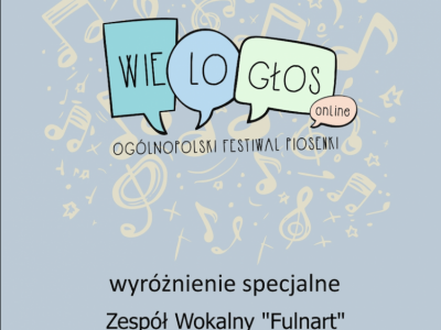 Zespół wokalny „Fulnart” otrzymał wyróżnienie specjalne podczas Ogólnopolskiego Festiwalu Piosenki „Wielogłos”, organizowanego przez Centrum Artystyczne The Voice.