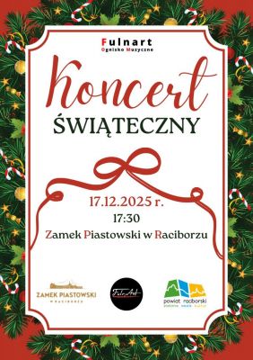 Serdecznie zapraszamy całe rodziny, przyjaciół oraz miłośników muzyki na „Koncert Świąteczny" w wykonaniu uczniów Ogniska Muzycznego Fulnart, który odbędzie się 17.12.2025 r. o godzinie 17:30 na Zamku Piastowskim w Raciborzu.