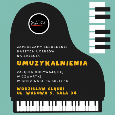 Umuzykalnienie Wodzisław 2025/2026AktualnościUmuzykalnienie Wodzisław 2025/20262025-09-11 Zapraszamy na zajęcia umuzykalniające w Wodzisławiu Śląskim. Zajęcia odbywają się w czwartki w sali 34 w Wodzisławiu Śląskim, przy ulicy Wałowej 5 Umuzykalnienie16:30 - 17:15 (uczniowie, którzy ukończyli 10 lat)